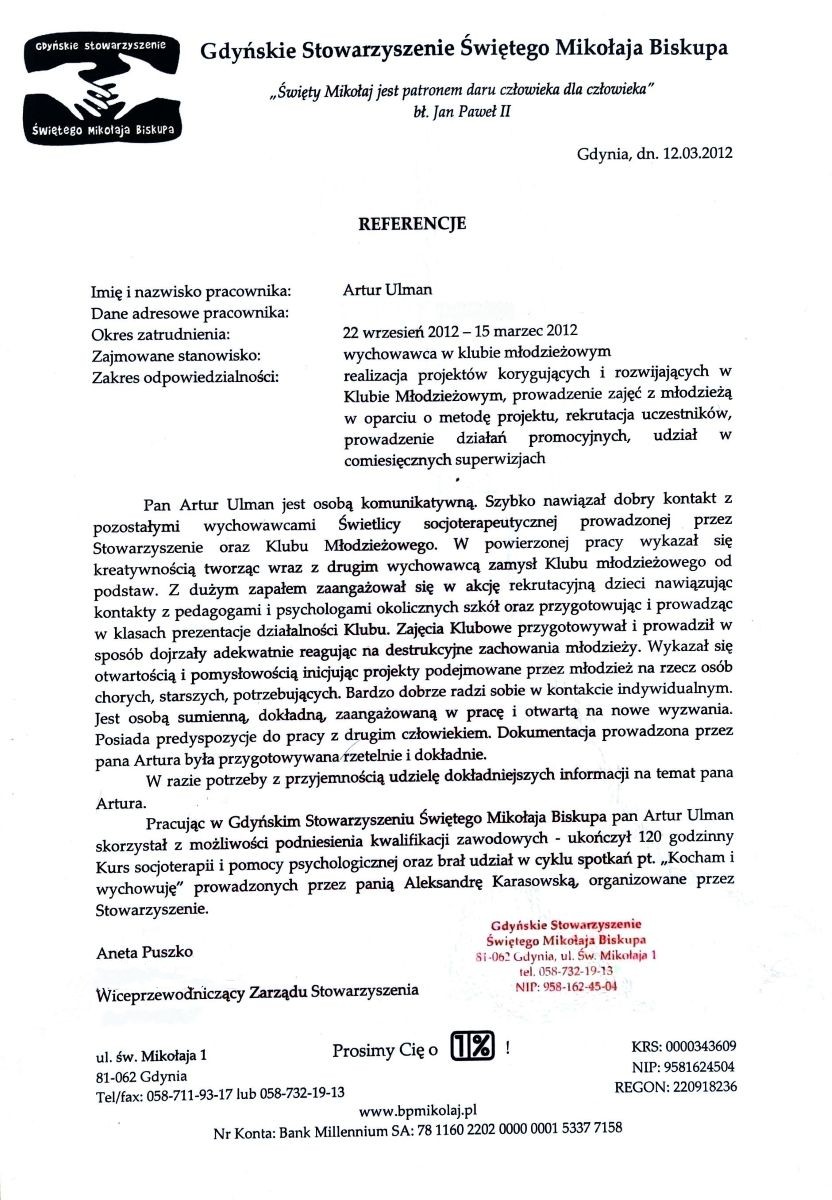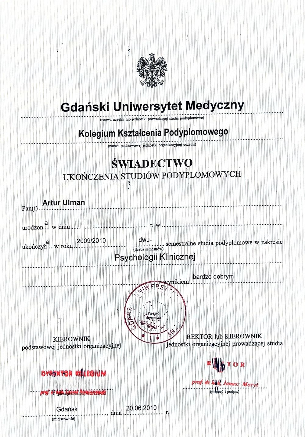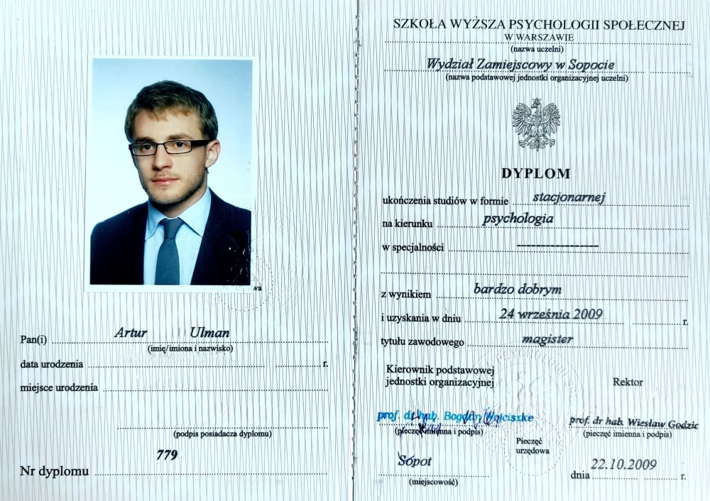 W ramach mojego doświadczenia zawodowego przez okres 7 lat pracowałem jako członek zespołu Oddziału Dziennego Psychiatrycznego dla Dzieci i Młodzieży przy ulicy Oliwskiej w Gdańsku, prowadzącego leczenie pacjentów w wieku gimnazjalnym oraz licealnym. W tym samym czasie związany byłem również z Poradnią Zdrowia Psychicznego dla Dzieci i Młodzieży. Doświadczenie zawodowe zdobywałem również w placówce interwencji kryzysowej, świetlicy socjoterapeutycznej oraz poradni psychologicznej w ramach struktur MOPS. Ukończyłem również studia podyplomowe z Psychologii Klinicznej na Gdańskim Uniwersytecie Medycznym oraz kurs socjoterapii i pomocy psychologicznej.